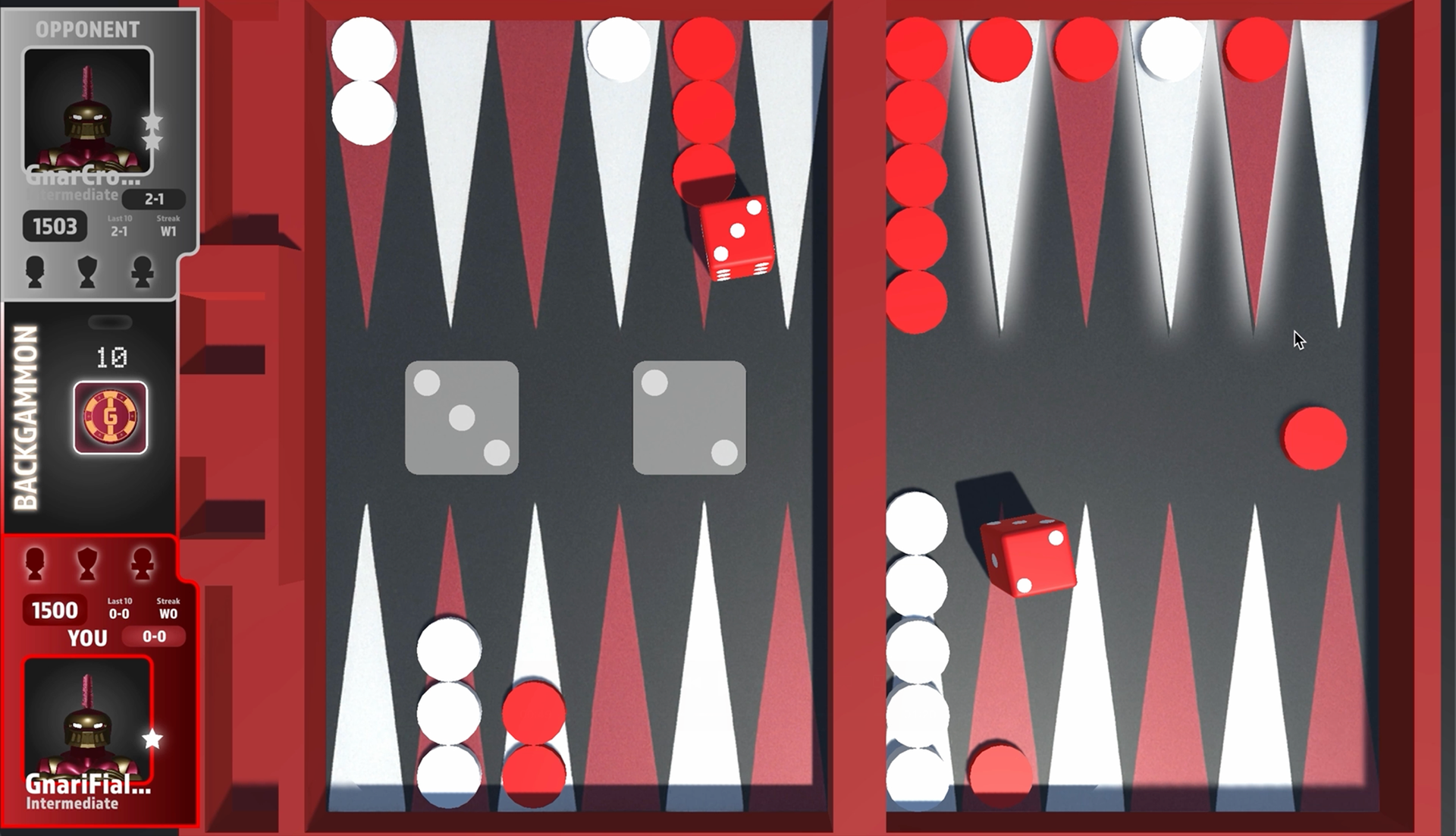 The mechanics were designed around ease of use and a tactile, authentic board-and-piece feel, with interactions that mirror the flow of a physical backgammon game. Boards and visual themes were designed in-house, featuring distinct styles that maintain legibility while giving each table a unique character. Together, these choices aim to balance traditional gameplay with a clean, modern presentation suited for both casual and competitive players.