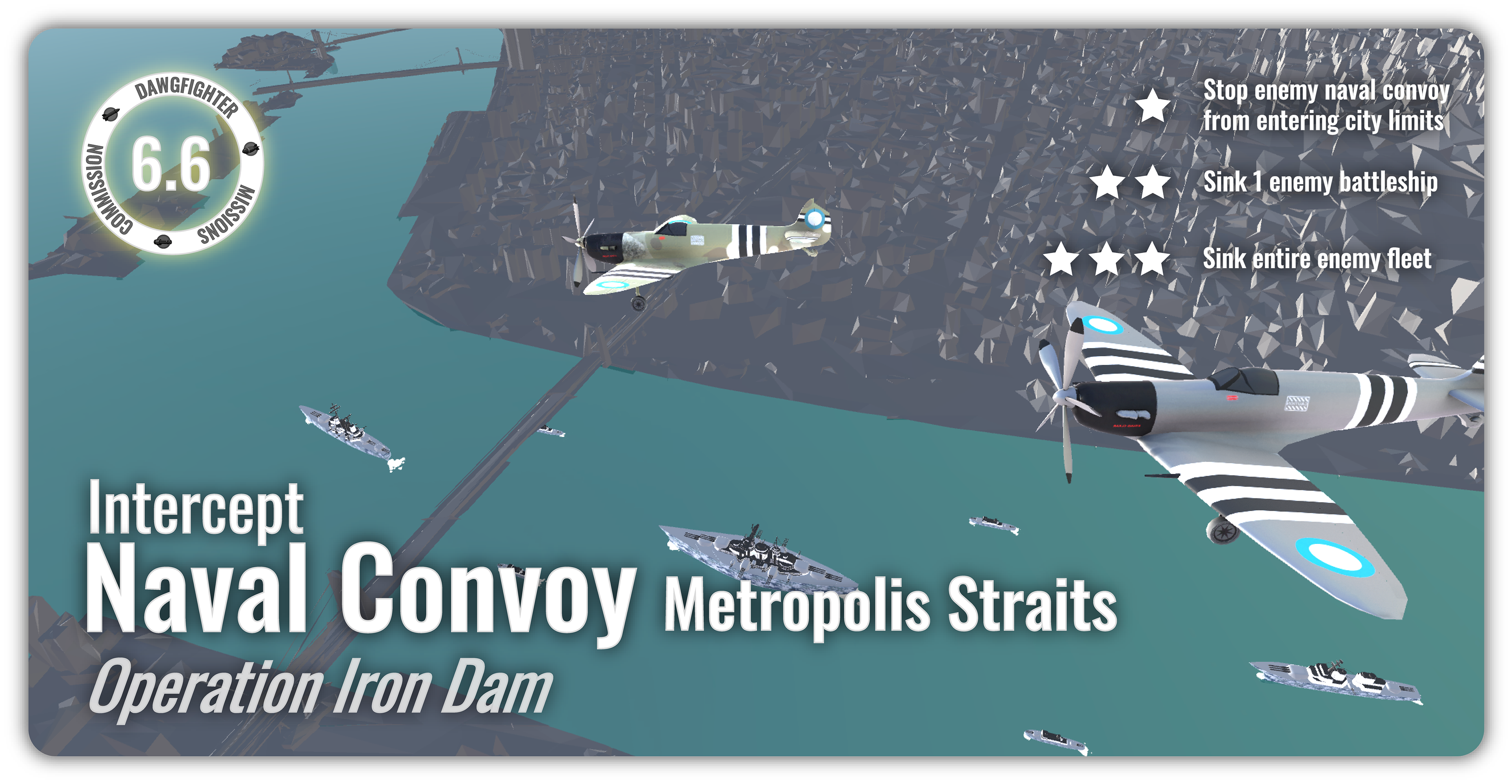 Dawgfighters is a multiplayer aerial combat game featuring both real-time and asynchronous modes, offering fast-paced engagements across a growing set of seven unique maps. Each environment incorporates detailed ground features that add depth and variation beyond traditional flight combat spaces, alongside a wide selection of aircraft and ordnance for diverse playstyles.