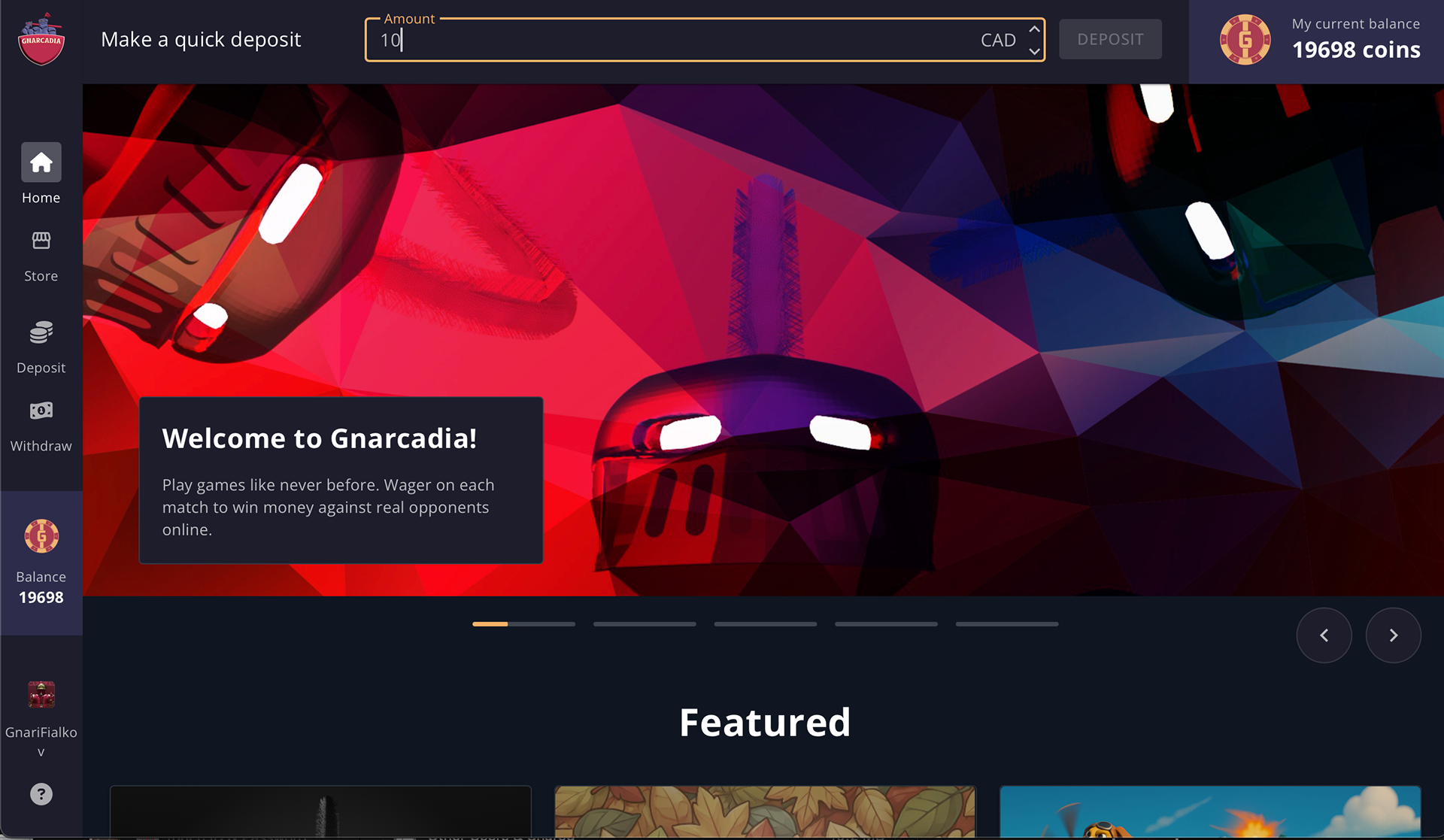 Gnarcadia is an innovative platform that bridges the worlds of video gaming and skill-based wagering. Founded by three engineering students with a shared passion for gaming, Gnarcadia offers players a unique opportunity to place wagers on their own performance in high-quality video game competitions. Our mission is to create a space where gamers not only enjoy the thrill of victory but also have full control over their monetary success, without relying on luck or chance. By blending immersive game design with a wagering system built on skill, Gnarcadia redefines the competitive gaming experience, putting the power in the players' hands.